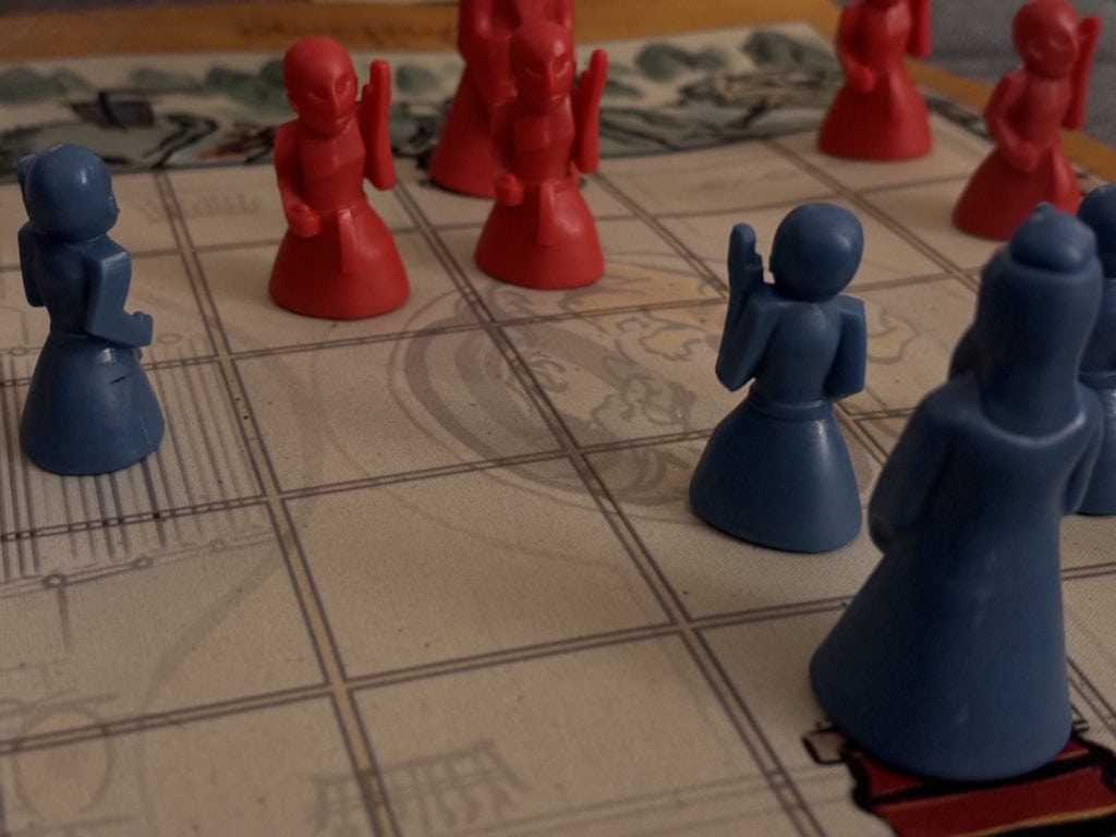 Onitama, conçu par Shimpei Sato, est un jeu de société à deux joueurs qui évoque à la fois les échecs et les arts martiaux japonais. Dans ce jeu de stratégie, chaque joueur contrôle un maître et quatre étudiants, positionnés sur un plateau de cinq cases sur cinq. L’objectif est de vaincre l’adversaire en utilisant un ensemble de mouvements prédéfinis, représentés par des cartes. Ce jeu se distingue par ses mécaniques simples mais stratégiquement profondes, et par la beauté de son matériel.
