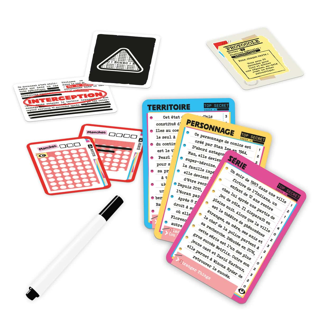 La base, l’idée de génie : faire un jeu de culture G simple. Tu as une carte sur laquelle est écrit un texte décrivant un événement, un lieu, un personnage… En face de chaque ligne du texte, un chiffre. Tu as dans la main un feutre effaçable et tu barres un maximum de lignes. Le but étant qu’à la fin, il ne te reste qu’un minimum de points visibles. Ensuite, tu regardes tes coéquipiers droit dans les yeux et tu leur sors tes morceaux de phrases sans ajouter un seul mot. Tu l’as compris : leur mission, c’est de découvrir de quoi tu parles avec ta carte toute zébrée de feutre noir. Maintenant t’as saisi le concept (et le nom) : c’est simple, facile et efficace.