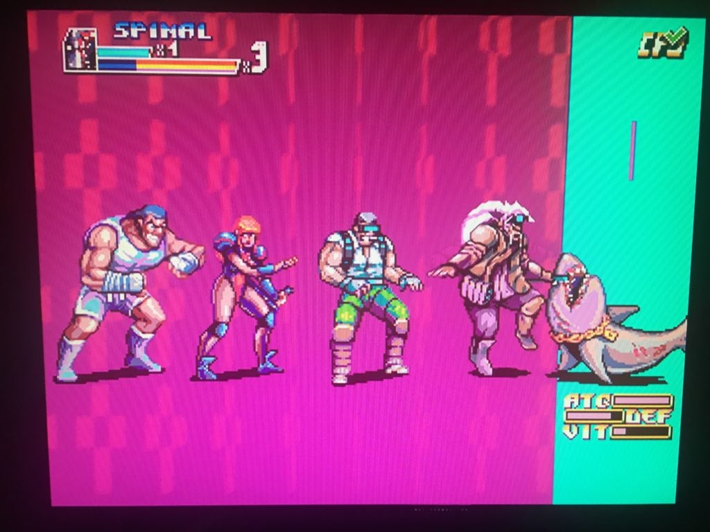 Et comme vous avez obtenu la Bad Ending, vous débloquez un nouveau mode de jeu. Le mode Arène est jouable jusqu’à 4 joueurs, si vous possédez 2 Grand Stick III (le stick arcade dédié au jeu) auxquels vous pouvez connecter une manette (par stick). Vous pourrez également jouer avec Rondo, qui se cache lui aussi en dehors de l’écran de sélection des personnages, à droite de Spinal.