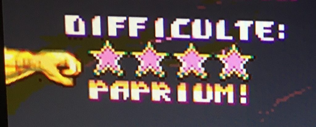Le fait d’avoir fini le jeu en mode Very Hard (3 étoiles) vous permet de débloquer le mode de difficulté “Paprium” (4 étoiles).