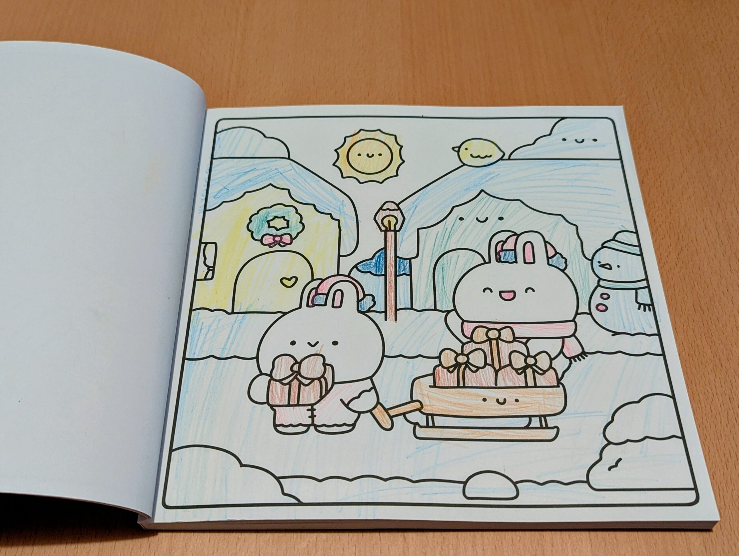 Ce qui fait le charme de ce livre, c'est son ambiance réconfortante. On s'imagine volontiers colorier ces pages au coin du feu, une tasse fumante à la main, pendant que dehors la neige tombe doucement. Bien que ce soit encore un peu tôt pour cela !