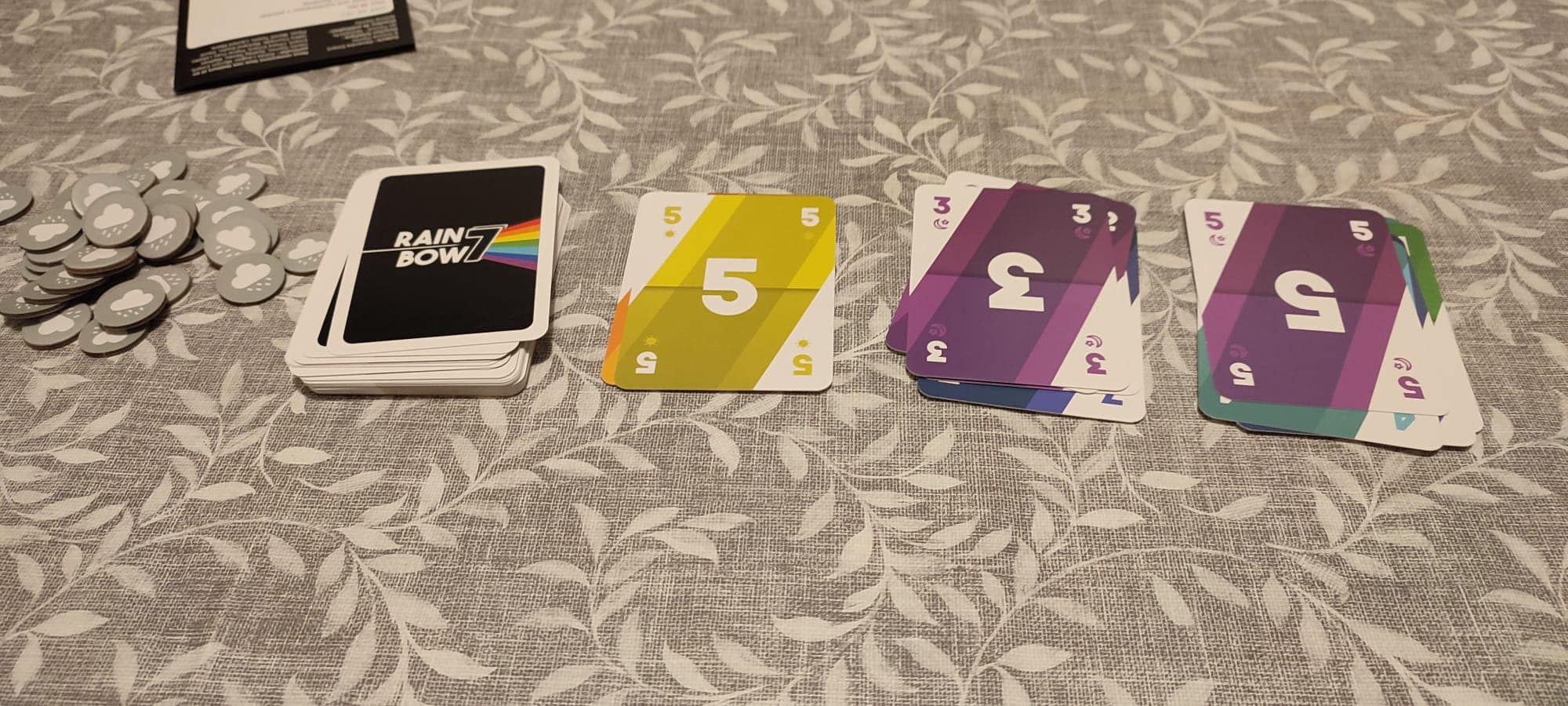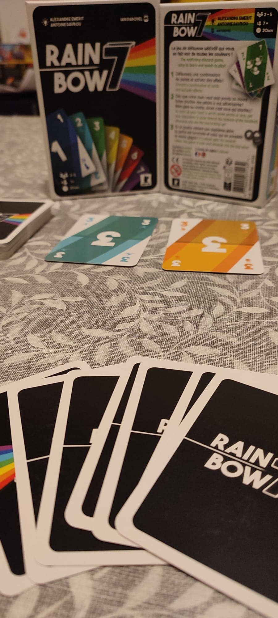 Rainbow 7 est un jeu de gestion de main édité par Ghost Dog, où vous devrez vous défausser du plus de cartes possible afin d’avoir moins de sept points en main pour faire un « Rainbow » et espérer gagner.