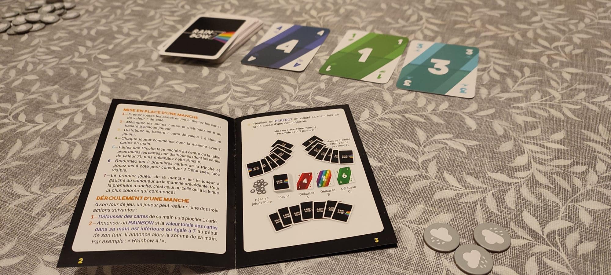 Autre façon de finir : réaliser un perfect, c’est-à-dire poser votre dernière carte. Dans ce cas, la partie se termine et tous les autres joueurs prennent un jeton. Au bout de quelques parties on se rend compte que faire un perfect est plus simple que de faire un Rainbow qui réussira. Il faut dire que les joueurs tenteront de vous bloquer en évitant de défausser des cartes de faible valeur !