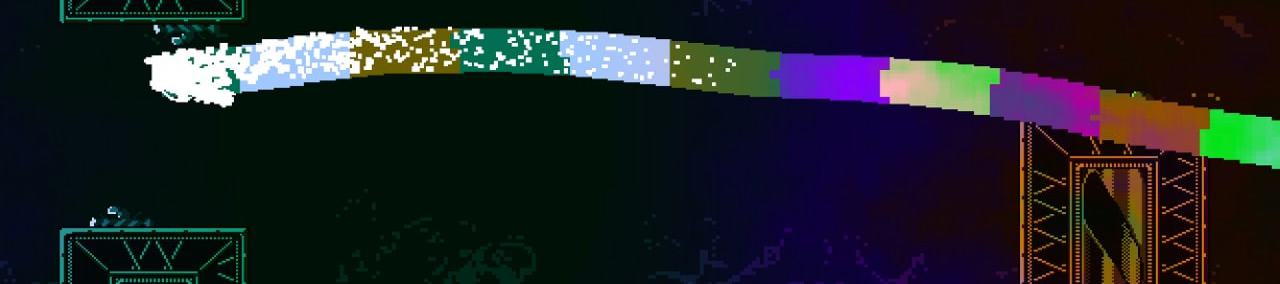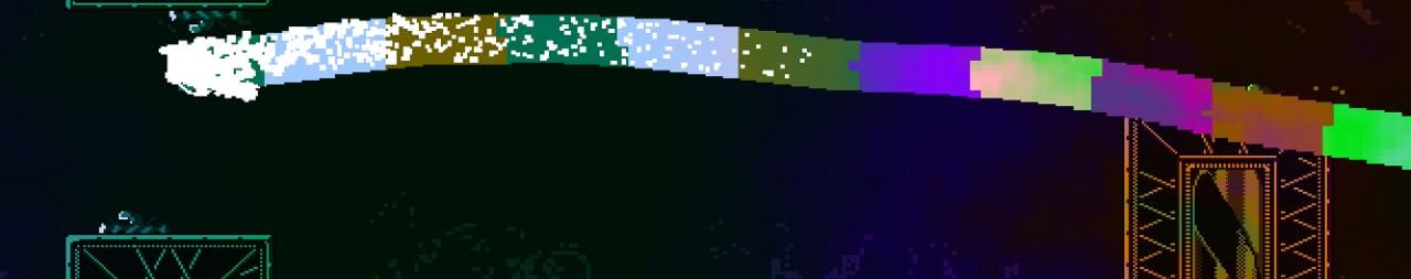 Ce mix de Chamelon Run et Super Meat Boy est également parsemé « d’atomiks ». Ces petites particules sont à ramasser pour améliorer votre performance et débloquer d’autres chapitres. Leur disposition est parfois organisée de manière à vous indiquer la route à suivre, mais tenter de toutes les recueillir aura comme principale conséquence d’augmenter le challenge global.