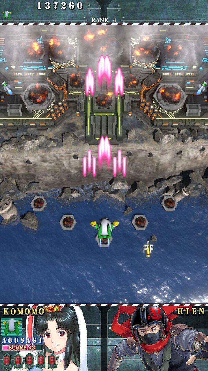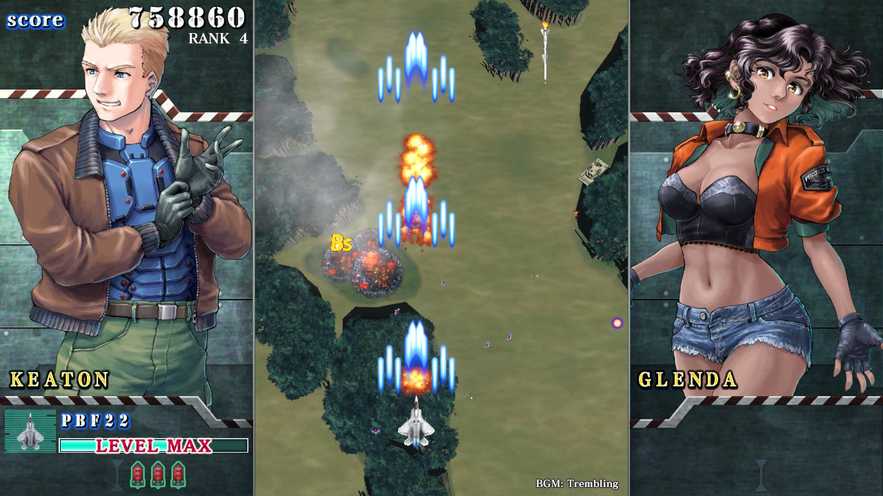 Côté gameplay, Sonic Wings Réunion assume pleinement son identité arcade. Le jeu repose sur un système de scoring pur, avec un tir automatique, des bombes et une attaque spéciale gelant le temps. La première série de niveaux est volontairement facile, presque didactique, pour permettre aux joueurs de s’habituer aux mécaniques. On accumule les bonus qui augmentent la cadence de tir, et en économisant les bombes on augmente son coefficient et on maximise son score.