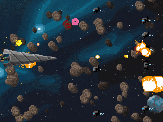 Graphiquement Steredenn: Binary Stars prend le parti pris pixel des jeux indépendant, comme c’est évidemment dans ma sensibilité je le trouve magnifique notamment dans ses images de fonds qui donne un sentiment quasi contemplatif d’Univers pixelisés et qui en même temps glisse quelques petites références Geek.