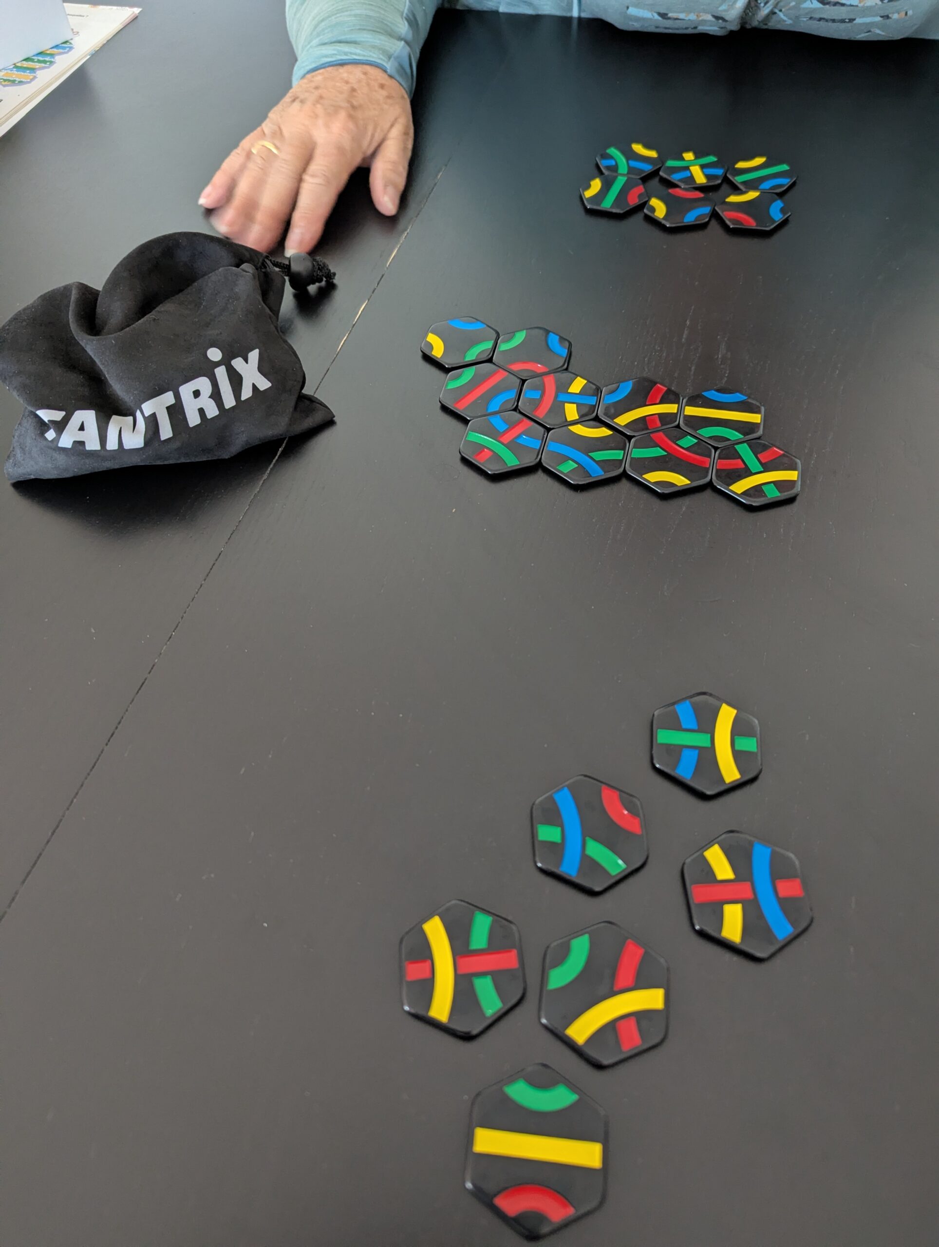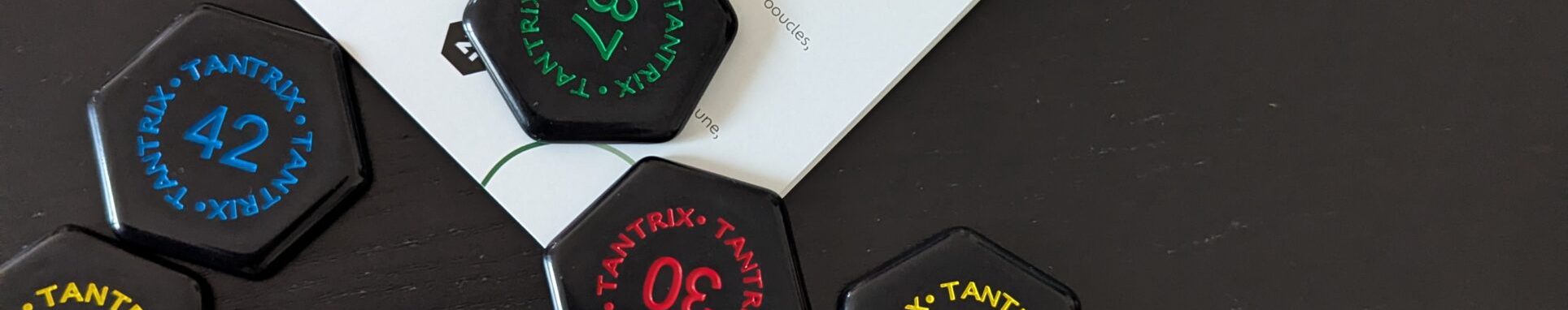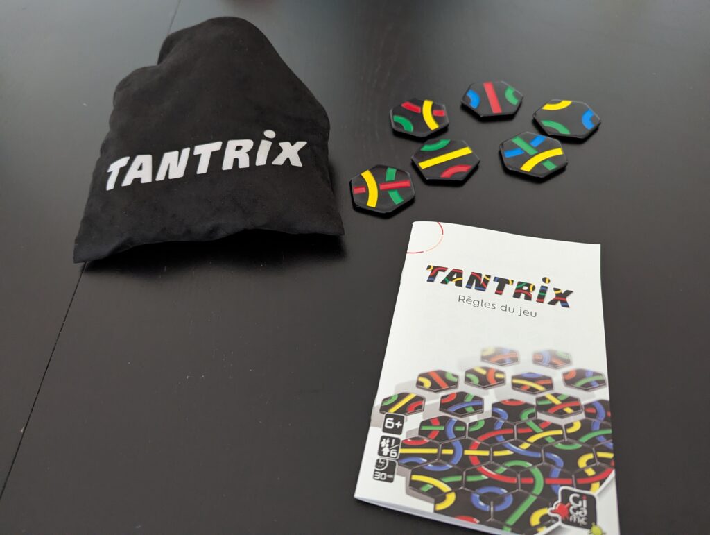 Le jeu Tantrix (édité en France par Gigamic) est à la fois un casse-tête et un jeu de stratégie. Il se joue sur des tuiles hexagonales, chacune dessineé avec trois bandes de couleur différentes. Le principe : connecter ces tuiles en respectant la correspondance des couleurs entre elles.