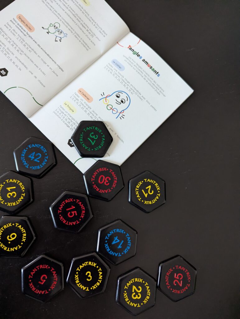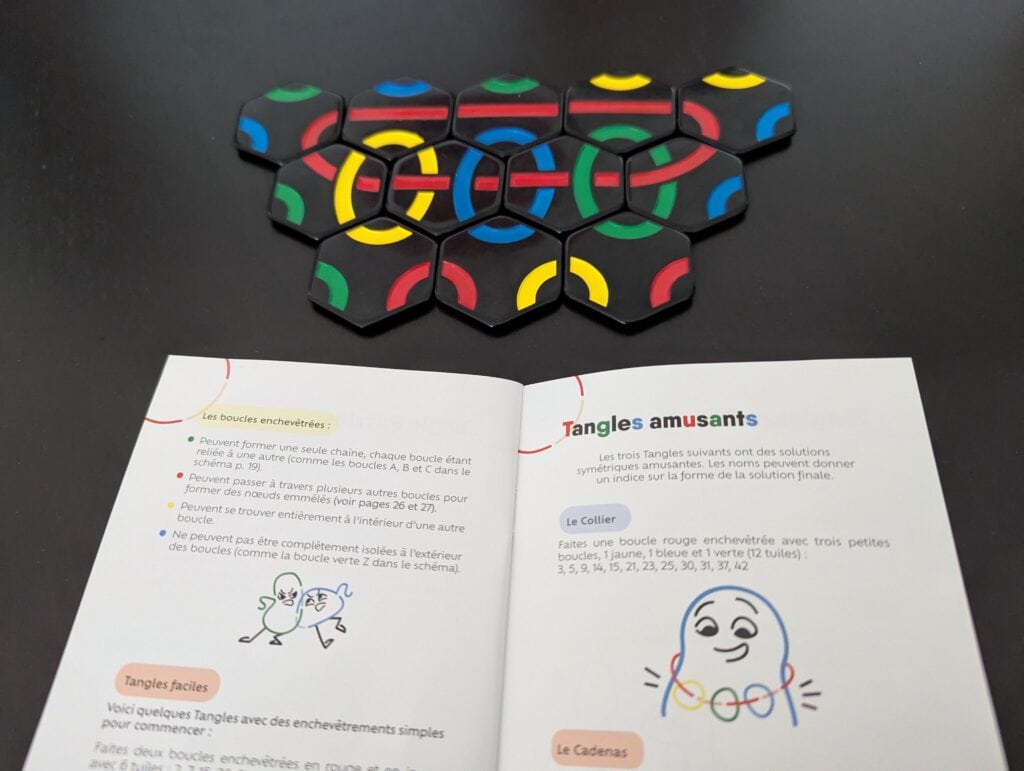 Tout d’abord, j’ai testé moi-même le mode solo avec le soutien sans faille de ma fille de 6 ans. Plein de volonté, mais complètement inutile sur ce coup-là ! Les Discovery Puzzles m’ont vraiment fait penser à un SmartGames, avec leur difficulté croissante. Ce qui est fou, c’est que la règle est toute simple, mais que rapidement le challenge est bien présent ! Diablement efficace. Les Tangles avec leur thème rigolo et les rainbow puzzles sont de la même trempe, mais sans la difficulté croissante.