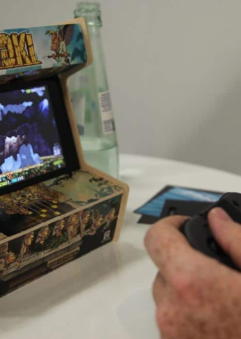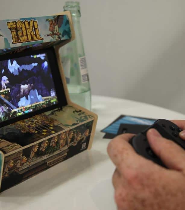 En conclusion, si Toki nouvelle mouture bénéficie d'une belle réalisation, il est surtout destiné à un public nostalgique ou amateur de jeux d'arcade exigeants. D'ailleurs, c'est probablement le public visé, car sur le stand de ïds nous avons également pu essayer la petite borne en carton qui sera proposée dans la version de base du jeu dite « rétro  ». Vous pourrez ainsi glisser votre Switch dedans et créer ainsi une mini-borne. C'est plutôt bien fait, tant au niveau de la matière que de la sérigraphie.