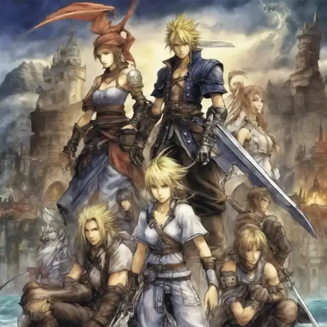 Peinture d'un personnage mystérieux dans un univers fantasy coloré, avec des éléments de forêt, châteaux et champignons magiques, illustrant un univers fantastique et aventureux.