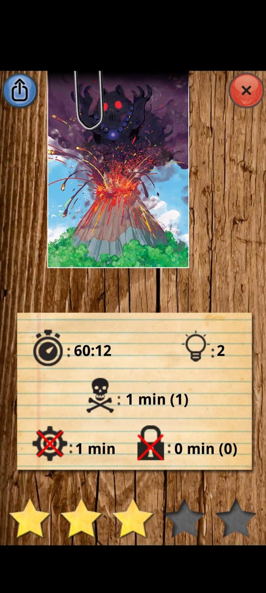Comme souvent, un élément du scénario sert également de timer : ici, c’est le volcan. il vous menace de détruire l’île, et vous avez une heure pour tenter d’apaiser sa colère.