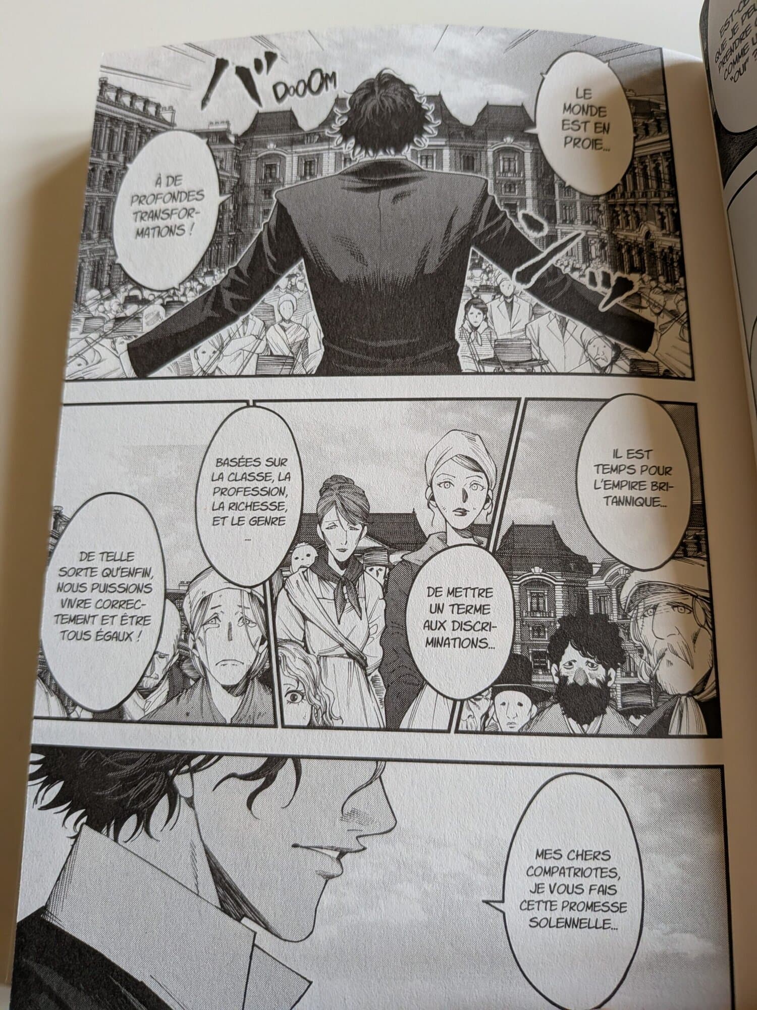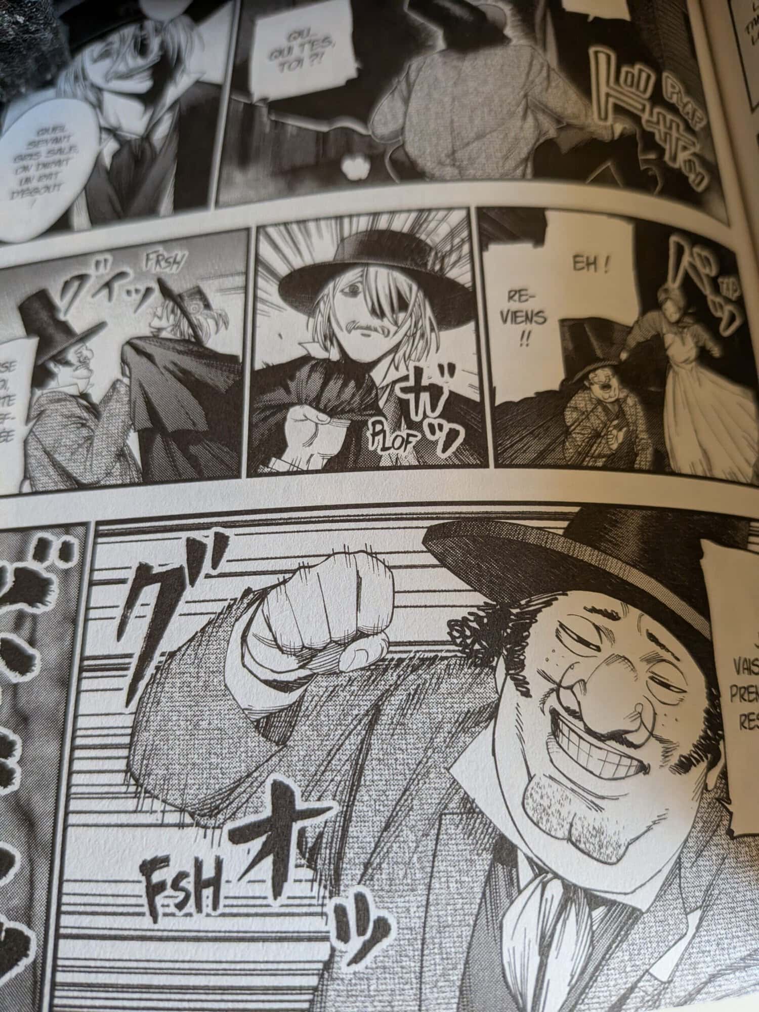 Mais LE big event du tome, c’est l’introduction de l’affrontement entre Jack et la pègre londonienne. J’ai beaucoup aimé la présentation des différentes factions, et notamment des chefs. C’est stylé, ils apparaissent chacun leur tour avec leurs propres caractéristiques ! J’ai bien ri en voyant à chaque fois leur tête mise à prix. Je me suis amusé à comparer le montant des primes de récompense pour vérifier qu’elles correspondaient bien à la férocité de chacun. Toute cette partie fait monter peu à peu la tension jusqu’à l’apparition du big boss, et là… Fin du tome ! J’ai vraiment hâte de voir le suivant ! On voit donc que le tome 3 élargit l’arrière-plan criminel. Cela renforce l’impression d’un grand jeu d’échecs, plus vaste que Jack seul.