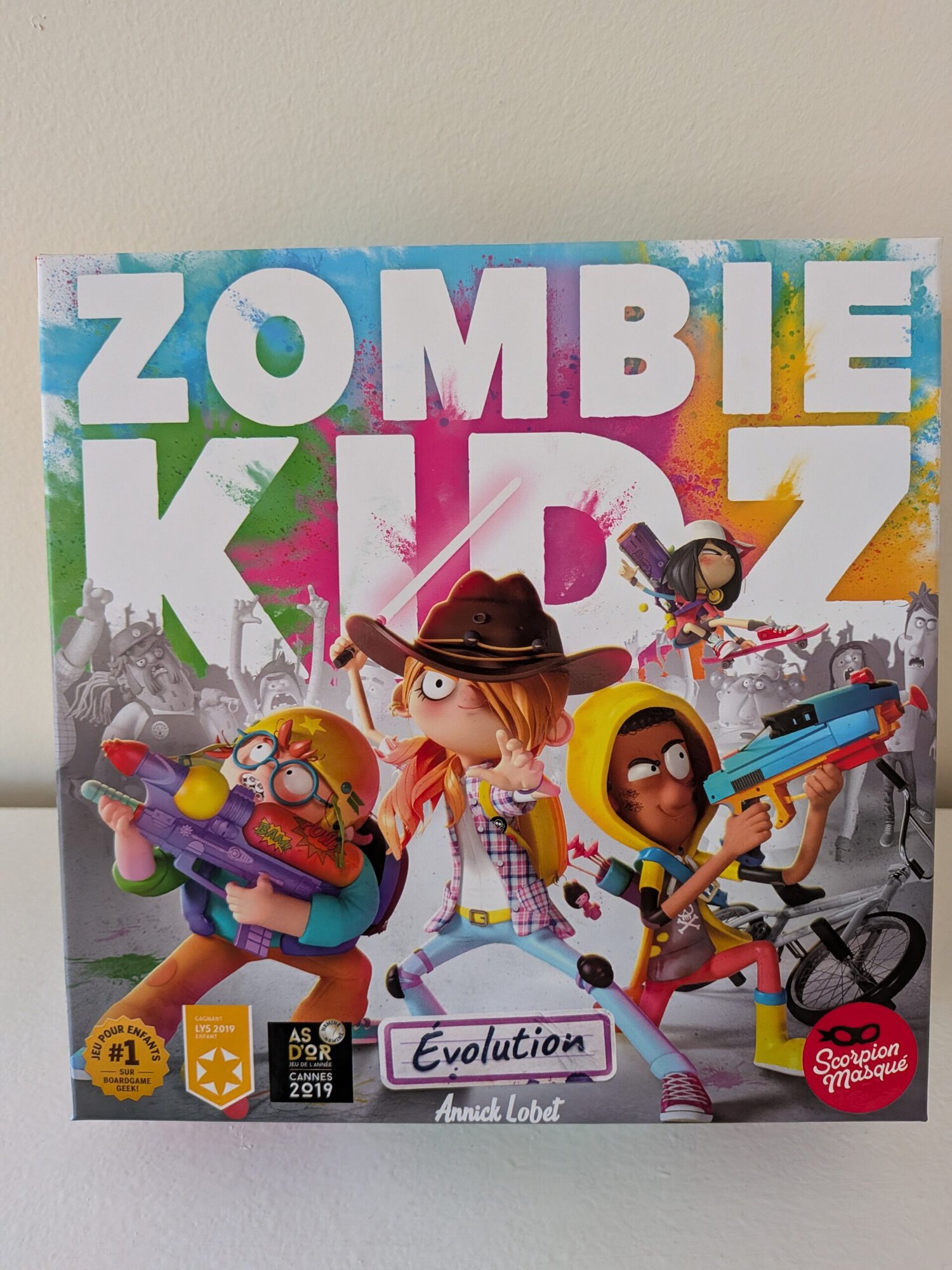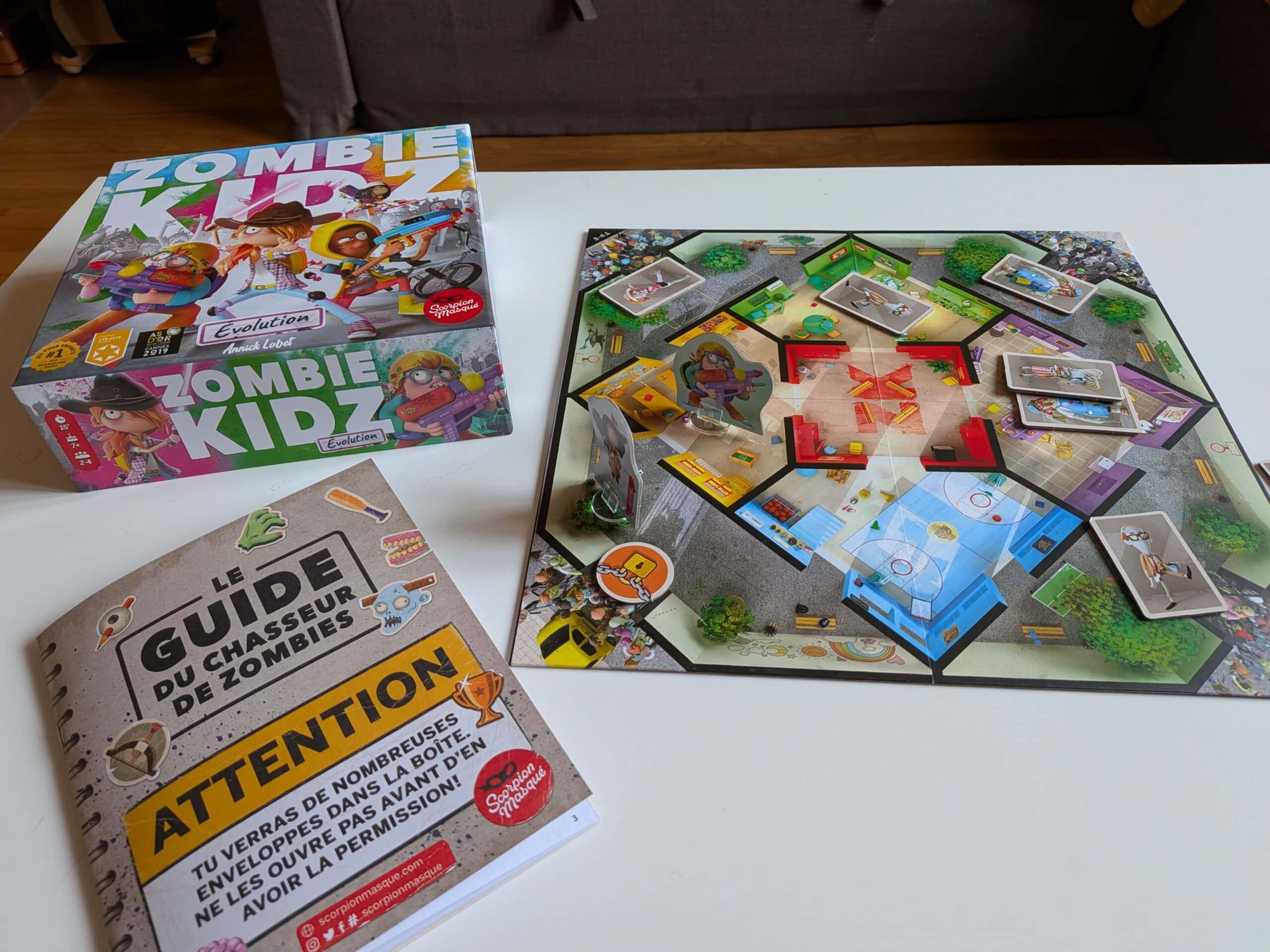 En effet, Zombie Kidz est édité par Le Scorpion Masqué. Cet éditeur québecois fondé en 2006 est réputé pour ses jeux intelligents et modernes. Ils font maintenant partie de Hachette Livre. On leur doit aussi Decrypto, Stay Cool ou Zombie Teenz Evolution. Leur ligne éditoriale est claire. Des jeux malins, bien finis, et souvent innovants.